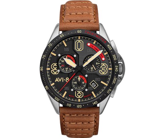 batteria (quarzo) che, come di consueto per gli orologi AVI-8, garantisce un cronometraggio preciso e offre le seguenti funzioni: 24 ore, Cronografo, Data, Min, Sec, Ora.
