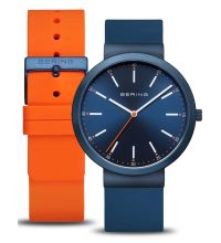Il bracciale in Silicone di alta qualità - colore: Blu, Arancione - con Fibbia vi darà un ulteriore piacere con il vostro nuovo orologio Bering. Il bracciale in Silicone offre un elevato livello di comfort e può essere indossato fino a una circonferenza massima del polso di 200 mm.
