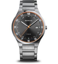 Il bracciale in Titanio di alta qualità - colore: Argento - con Fibbia pieghevole vi darà un ulteriore piacere con il vostro nuovo orologio Bering. Il bracciale in Titanio offre un elevato livello di comfort e può essere indossato fino a una circonferenza massima del polso di 210 mm.