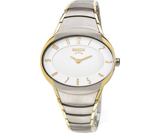 Il bracciale in Titanio di alta qualità - colore: Oro, Argento - con Fibbia pieghevole vi darà un ulteriore piacere con il vostro nuovo orologio Boccia. Il bracciale in Titanio offre un elevato livello di comfort e può essere indossato fino a una circonferenza massima del polso di 185 mm.