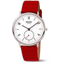 Il bracciale in Tessile di alta qualità - colore: Rosso - con Fibbia vi darà un ulteriore piacere con il vostro nuovo orologio Boccia. Il bracciale in Tessile offre un elevato livello di comfort e può essere indossato fino a una circonferenza massima del polso di 185 mm.