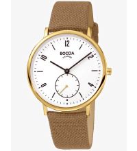 batteria (quarzo) che, come di consueto per gli orologi Boccia, garantisce un cronometraggio preciso e offre le seguenti funzioni: Ora, Min, Sec.