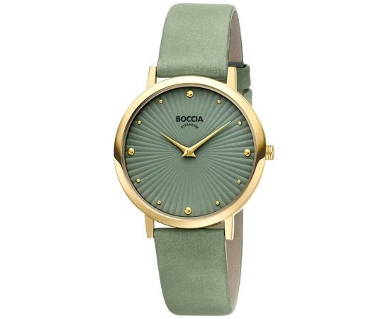 batteria (quarzo) che, come di consueto per gli orologi Boccia, garantisce un cronometraggio preciso e offre le seguenti funzioni: Ora, Min.