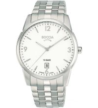 batteria (quarzo) che, come di consueto per gli orologi Boccia, garantisce un cronometraggio preciso e offre le seguenti funzioni: Data, Min, Sec, Ora.