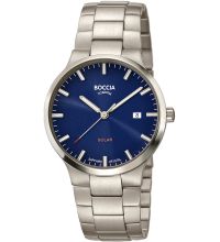 solare (quarzo) che, come di consueto per gli orologi Boccia, garantisce un cronometraggio preciso e offre le seguenti funzioni: Ora, Min, Sec, Data, Solare.
