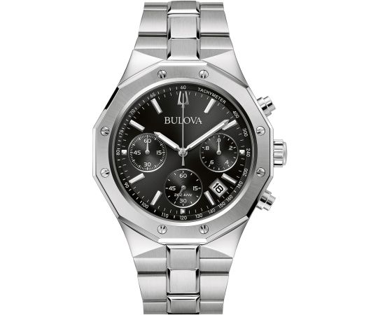 batteria (quarzo) che, come di consueto per gli orologi Bulova, garantisce un cronometraggio preciso e offre le seguenti funzioni: Ora, Min, Sec, Data, Cronografo.