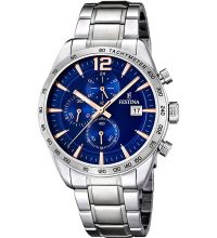 batteria (quarzo) che, come di consueto per gli orologi Festina, garantisce un cronometraggio preciso e offre le seguenti funzioni: 24 ore, Cronografo, Data, Min, Sec, Ora.