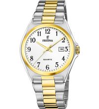 Il bracciale in Acciaio inossidabile di alta qualità - colore: Argento, Oro - con Fibbia pieghevole vi darà un ulteriore piacere con il vostro nuovo orologio Festina. Il bracciale in Acciaio inossidabile offre un elevato livello di comfort e può essere indossato fino a una circonferenza massima del polso di 210 mm.