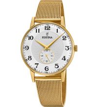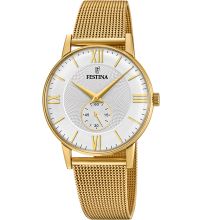 Il bracciale in Acciaio inossidabile di alta qualità - colore: Oro - con Fibbia ad ardiglione vi darà un ulteriore piacere con il vostro nuovo orologio Festina. Il bracciale in Acciaio inossidabile offre un elevato livello di comfort e può essere indossato fino a una circonferenza massima del polso di 205 mm.