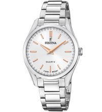 Il bracciale in Acciaio inossidabile di alta qualità - colore: Argento - con Fibbia pieghevole vi darà un ulteriore piacere con il vostro nuovo orologio Festina. Il bracciale in Acciaio inossidabile offre un elevato livello di comfort e può essere indossato fino a una circonferenza massima del polso di 180 mm.