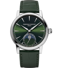 automatico che, come di consueto per gli orologi Frederique Constant, garantisce un cronometraggio preciso e offre le seguenti funzioni: Ora, Min, Sec, Data, Fase lunare.