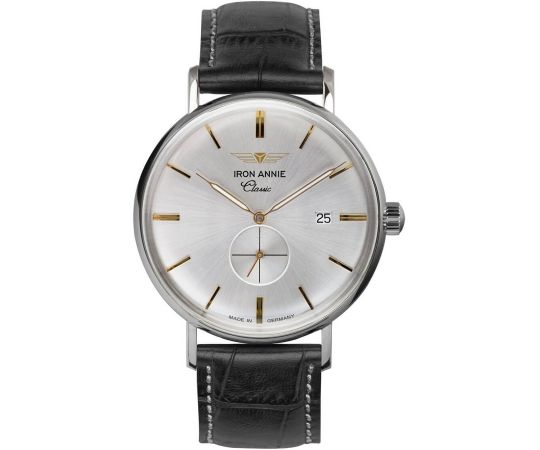 Il bracciale in Pelle di vitello di alta qualità - colore: Nero - con Fibbia vi darà un ulteriore piacere con il vostro nuovo orologio Iron Annie. Il bracciale in Pelle di vitello offre un elevato livello di comfort e può essere indossato fino a una circonferenza massima del polso di 210 mm.