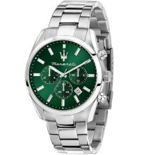 Il Vetro minerale, temperato offre un'ampia protezione contro graffi e danni accidentali. Sotto, il quadrante del vostro nuovo orologio da sogno è Verde. L'illuminazione del segnatempo Maserati R8853151011 è arricchita da Mani luminose, Indici illuminati, che ne facilitano la lettura anche in condizioni di scarsa illuminazione.