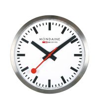 Questo orologio da parete Mondaine con il design ufficiale dell'orologio della stazione ferroviaria svizzera colpisce per il suo stile minimalista. L'alloggiamento in alluminio è realizzato con una finitura dorata spazzolata opaca. Le lancette, gli indici e il logo Mondaine tono su tono conferiscono all'orologio un'eleganza semplice. Con i suoi 40 cm di diametro diventa un complemento d'arredo perfetto in ogni stanza.