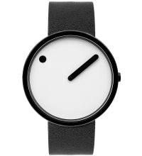 Picto® mette in discussione l'idea di un orologio classico con due lancette e un quadrante con numeri. Qui l'ora è indicata da un punto sul quadrante girevole, mentre i minuti sono indicati da una lancetta tradizionale. |  |
