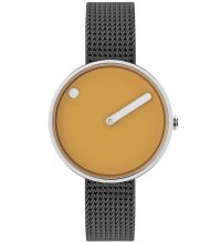Picto® mette in discussione l'idea di un orologio classico con due lancette e un quadrante con numeri. Qui l'ora è indicata da un punto sul quadrante girevole, mentre i minuti sono indicati da una lancetta tradizionale. |  |
