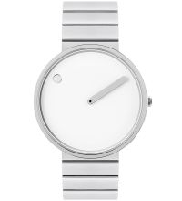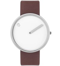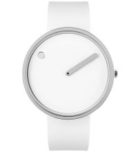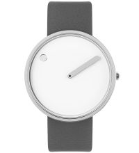 Picto® mette in discussione l'idea di un orologio classico con due lancette e un quadrante con numeri. Qui l'ora è indicata da un punto sul quadrante girevole, mentre i minuti sono indicati da una lancetta tradizionale. |  |
