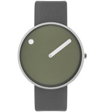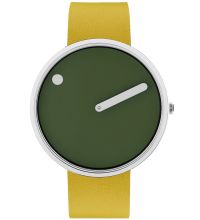 Picto® mette in discussione l'idea di un orologio classico con due lancette e un quadrante con numeri. Qui l'ora è indicata da un punto sul quadrante girevole, mentre i minuti sono indicati da una lancetta tradizionale. |  |