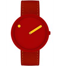 Picto® mette in discussione l'idea di un orologio classico con due lancette e un quadrante con numeri. Qui l'ora è indicata da un punto sul quadrante girevole, mentre i minuti sono indicati da una lancetta tradizionale. |  |