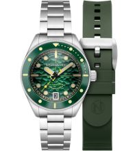 Il Vetro zaffiro, arcuato offre un'ampia protezione contro graffi e danni accidentali. Sotto, il quadrante del vostro nuovo orologio da sogno è Verde. L'illuminazione del segnatempo Spinnaker SP-5159-22 è arricchita da Superluminova, che ne facilitano la lettura anche in condizioni di scarsa illuminazione.