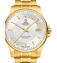 Il bracciale in Acciaio inossidabile di alta qualità - colore: Oro - con Fibbia pieghevole vi darà un ulteriore piacere con il vostro nuovo orologio Swiss Military. Il bracciale in Acciaio inossidabile offre un elevato livello di comfort e può essere indossato fino a una circonferenza massima del polso di 190 mm.