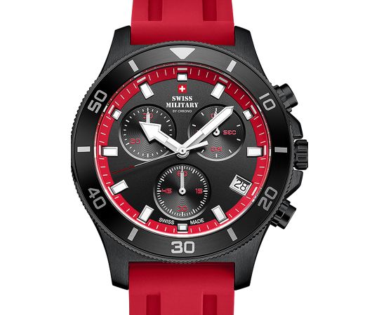 batteria (quarzo) che, come di consueto per gli orologi Swiss Military, garantisce un cronometraggio preciso e offre le seguenti funzioni: Cronografo, Data, Min, Sec, Ora.