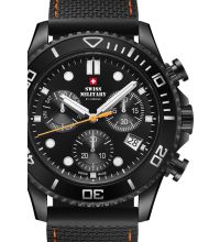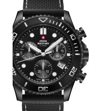batteria (quarzo) che, come di consueto per gli orologi Swiss Military, garantisce un cronometraggio preciso e offre le seguenti funzioni: Ora, Min, Sec, Data, Cronografo, Feriale.