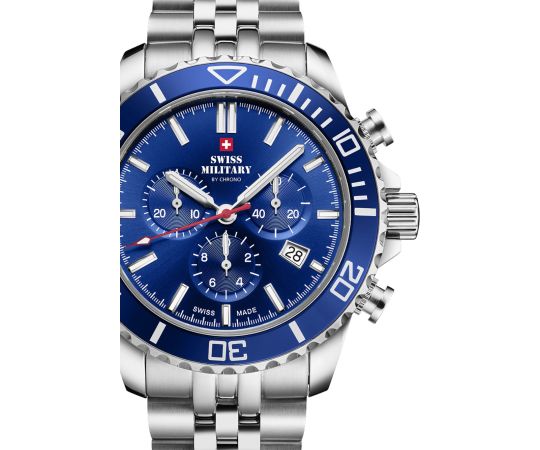 batteria (quarzo) che, come di consueto per gli orologi Swiss Military, garantisce un cronometraggio preciso e offre le seguenti funzioni: Ora, Min, Sec, Data, Cronografo.