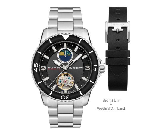 automatico che, come di consueto per gli orologi Thomas Earnshaw, garantisce un cronometraggio preciso e offre le seguenti funzioni: Ora, Min, Sec, Data.