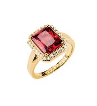 Anello con pietra ottagonale rossa Elyndra Placcato oro
