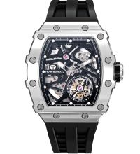 La cassa Cuscino misura 44 mm di larghezza e 16 mm di altezza e, a seconda del gusto individuale, è in grado di abbellire quasi tutti i polsi. La lunetta è Fisso e si distingue discretamente dalla cassa. Il fondello dell'orologio è in fondo di vetro, avvitato, e costituisce il tocco finale di un design coerente.