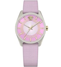 Il Vetro zaffiro, antiriflesso offre un'ampia protezione contro graffi e danni accidentali. Sotto, il quadrante del vostro nuovo orologio da sogno è Rosa. L'illuminazione del segnatempo Versace VE8A00124 è arricchita da Mani luminose, che ne facilitano la lettura anche in condizioni di scarsa illuminazione.