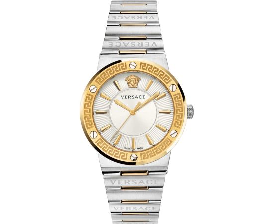 Il bracciale in Acciaio inossidabile di alta qualità - colore: Oro, Argento - con Chiusura a farfalla vi darà un ulteriore piacere con il vostro nuovo orologio Versace. Il bracciale in Acciaio inossidabile offre un elevato livello di comfort e può essere indossato fino a una circonferenza massima del polso di 195 mm.