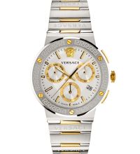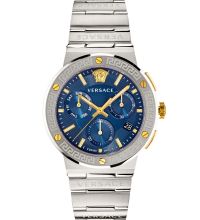 batteria (quarzo) che, come di consueto per gli orologi Versace, garantisce un cronometraggio preciso e offre le seguenti funzioni: Ora, Min, Sec, Data, Feriale, Cronografo.