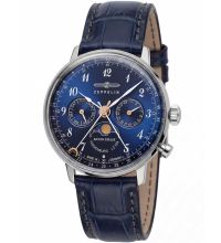 batteria (quarzo) che, come di consueto per gli orologi Zeppelin, garantisce un cronometraggio preciso e offre le seguenti funzioni: Data, Settimana di cal., Min, Fase lunare, Sec, Ora, Feriale.