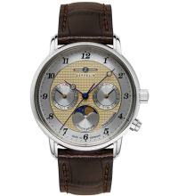 batteria (quarzo) che, come di consueto per gli orologi Zeppelin, garantisce un cronometraggio preciso e offre le seguenti funzioni: Ora, Min, Sec, Data, Feriale, Fase lunare.