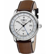 automatico che, come di consueto per gli orologi Zeppelin, garantisce un cronometraggio preciso e offre le seguenti funzioni: Secondo fuso orario, Data, GMT, Min, Sec, Ora.